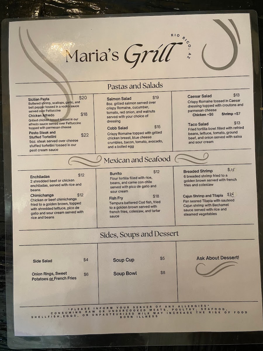 Tucked away along 1139 W Frontage Rd in Rio Rico, Arizona, Maria’s Grill is one of those local gems that instantly makes you feel at home. The first time I stopped by was on a road trip through southern Arizona, and I wasn’t expecting much more than a quick bite. What I found instead was a cozy diner full of warmth, flavor, and community. The smell of grilled carne asada and homemade tortillas filled the air, and the friendly staff greeted me like an old friend before I even took a seat.